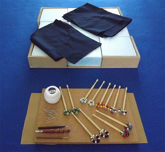 Since Lace making is not an everyday craft and the equipment is somewhat specialised we provide a starter kit for £30.00 which provides everything you will need to start making lace. You will soon become familiar with items such as lazy susan, lace pricker, pin lifter and pricker card which are all in the Starter Kit.